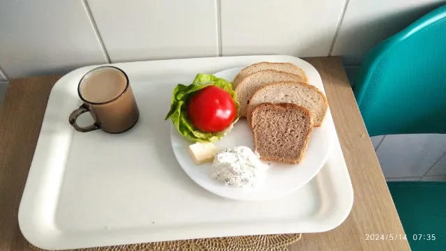 | Kasza kukurydziana na mleku 300 ml (MLE,) Chleb mieszany pszenno-żytni 100 g (GLU PSZ, GLU ŻYT,) Chleb Graham 30 g (GLU PSZ,) Masło extra 82% 15 g (MLE,) Polędwica Sopocka drobiowo-wieprzowa wędzona parzona 50 g (SOJ,) Pomidor 80 g Sałata zielona 20 g Herbata czarna granulowana z/c 250 ml | Kasza kukurydziana na mleku 300 ml (MLE,) Chleb mieszany pszenno-żytni 130 g (GLU PSZ, GLU ŻYT,) Masło extra 82% 15 g (MLE,) Polędwica Sopocka drobiowo-wieprzowa wędzona parzona 50 g (SOJ,) Sałata zielona 20 g Pomidor 80 g Herbata czarna granulowana z/c 250 m | Kasza kukurydziana na mleku 300 ml (MLE,) Chleb Graham 130 g (GLU PSZ,) Masło extra 82% 15 g (MLE,) Polędwica Sopocka drobiowo-wieprzowa wędzona parzona 50 g (SOJ,) Pomidor 80 g Sałata zielona 20 g Herbata czarna granulowana b/c 250 ml |